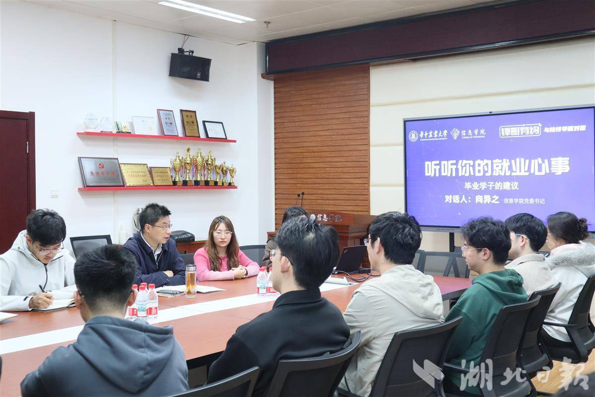 华中农大信息学院党委书记向异之与毕业学子面对面交流(湖北日报通讯员刘媛摄)
