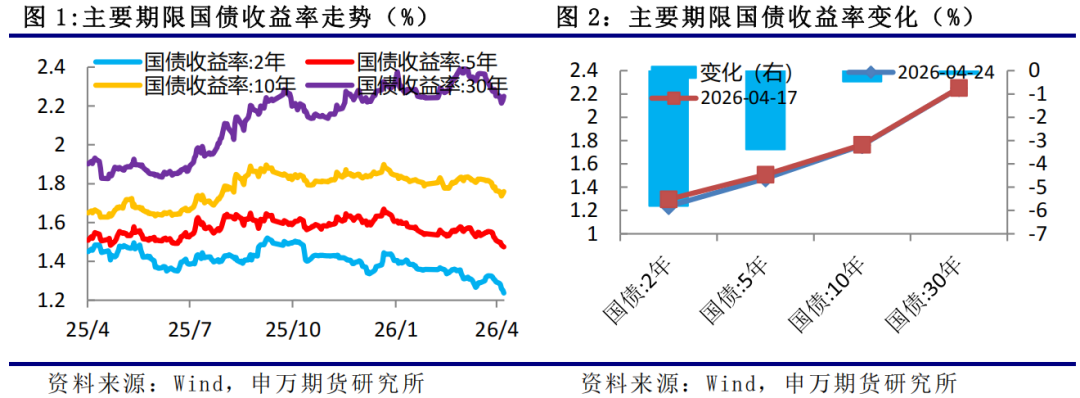 本周短端2年期利率下行幅度大于长端利率,长短端利差有所扩大。