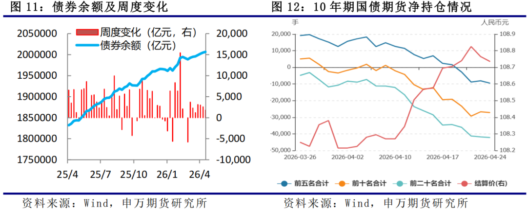 4、债券净融资维持低位,机构净多持仓涨跌不一