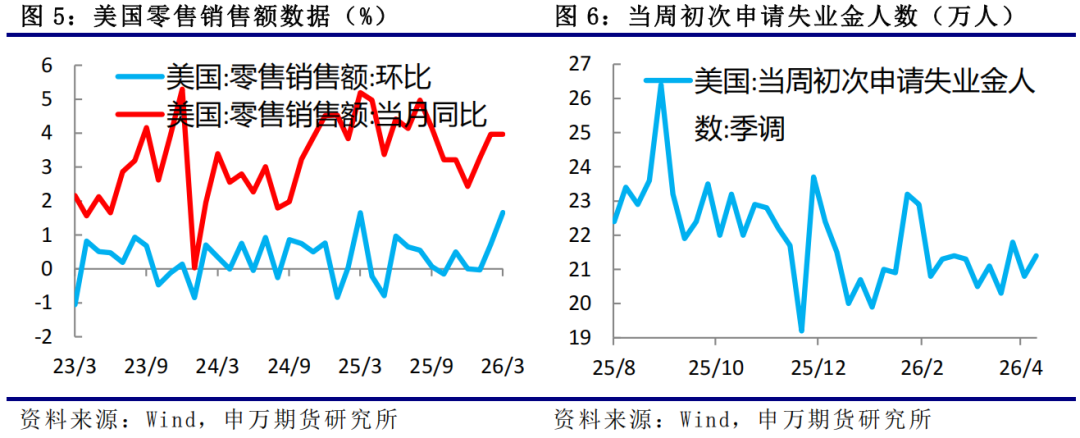 美国3月零售销售环比增长1.7%,高于1.4%的市场预期,消费表现超预期、内需韧性凸显,主要受油价走高、退税季红利带动,核心零售消费同样改善;该数据反映美国经济短期基本面偏强,进一步延后美联储降息节奏,高利率维持时间或将拉长,但本轮消费增长受价格因素与阶段性政策红利支撑,叠加居民负债、通胀压制等问题,后续消费复苏的持续性仍存在不确定性。